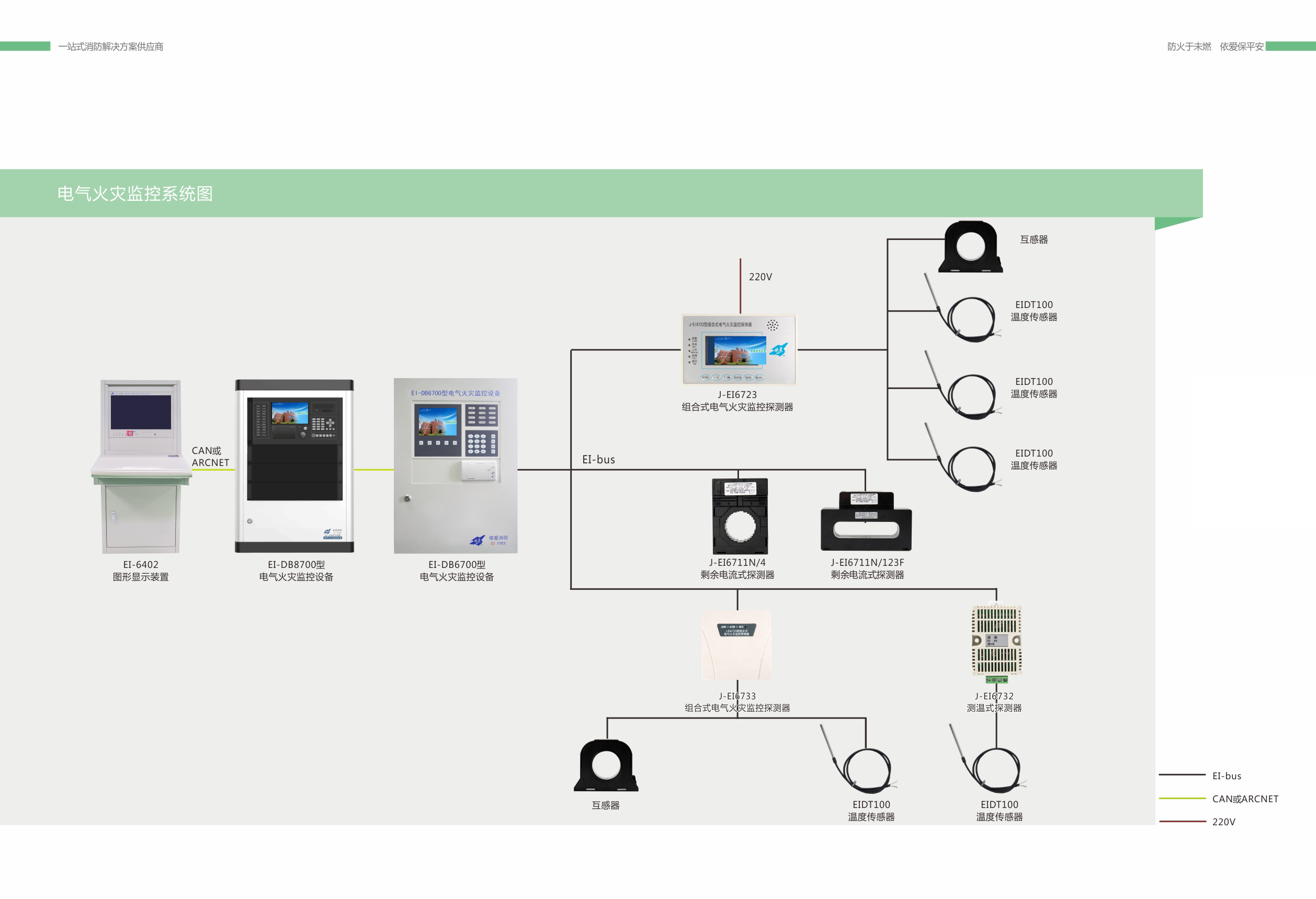 EI 系列電氣火災監控系統應包括電氣火災監控設備、剩余電流探測器(電流互感器)、測溫式探測器(傳感器)等產(chǎn)品。
