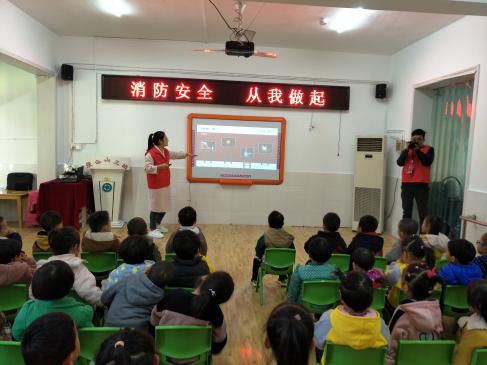 志愿者們根據幼兒年齡小、理解能力較弱的特點(diǎn),利用卡通圖片及簡(jiǎn)潔易懂的小兒歌,就火災的危害性、119報警注意事項、疏散逃生要點(diǎn)及滅火器使用方法等消防安全常識進(jìn)行了詳細講解。