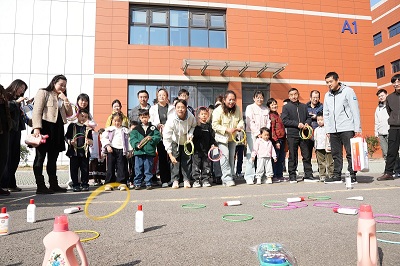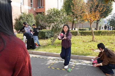 隨后,活動(dòng)進(jìn)入輕松有趣的親子游戲環(huán)節。在公司大樓門(mén)口,《套圈》《平衡小能手》《文明飛行棋》《信任盲行》四個(gè)游戲區域同步開(kāi)展。大人和孩子齊上陣,在妙趣橫生的互動(dòng)中協(xié)同合作,加油聲、歡呼聲、笑語(yǔ)聲此起彼伏,現場(chǎng)化身為一片歡樂(lè )的海洋?!短兹Α窋偽蝗藲獗?,彩圈紛飛,喝彩不斷,成為活動(dòng)現場(chǎng)最火爆的風(fēng)景線(xiàn);《平衡小能手》區域,孩子們金雞獨立,目光緊鎖弧線(xiàn),在晃動(dòng)中精準捕捉來(lái)球,贏(yíng)得滿(mǎn)場(chǎng)喝彩;巨型《文明飛行棋》賽場(chǎng)趣味盎然,孩子們擲出骰子,因“文明行為”前進(jìn),因“不良習慣”后退,在游戲中生動(dòng)實(shí)踐了行為規范;《信任盲行》考驗極致信任,蒙眼者無(wú)畏前行,指引者口令清晰,在障礙中攜手共進(jìn),完美抵達。